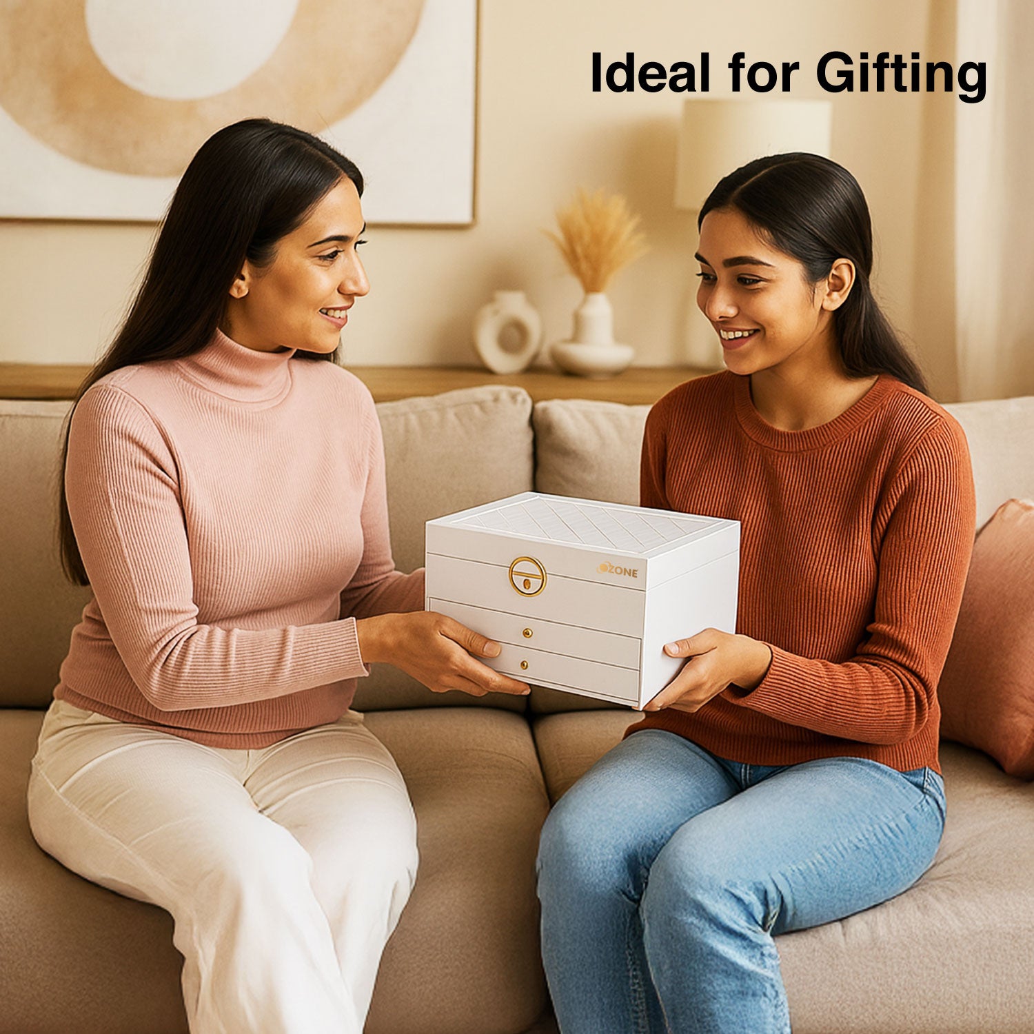 Ozone Jewellery Box with 3 Layers with Premium Leather & Velvet Lining | Necklace Hooks, Ring Slots, Hidden Compartment, Adjustable Sections, Watch Pillow & Removable Storage for Wardrobe, Dresser & Tabletop (White)